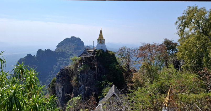 Wat Chaloem Phra Kiat Phrachomklao Rachanusorn is a striking hilltop temple in Lampang Province, northern Thailand, renowned for its white pagodas perched dramatically on jagged limestone peaks. Reached by a steep climb, the temple rewards visitors with sweeping panoramic views of the surrounding mountains and sky, creating a sense of serenity and awe.