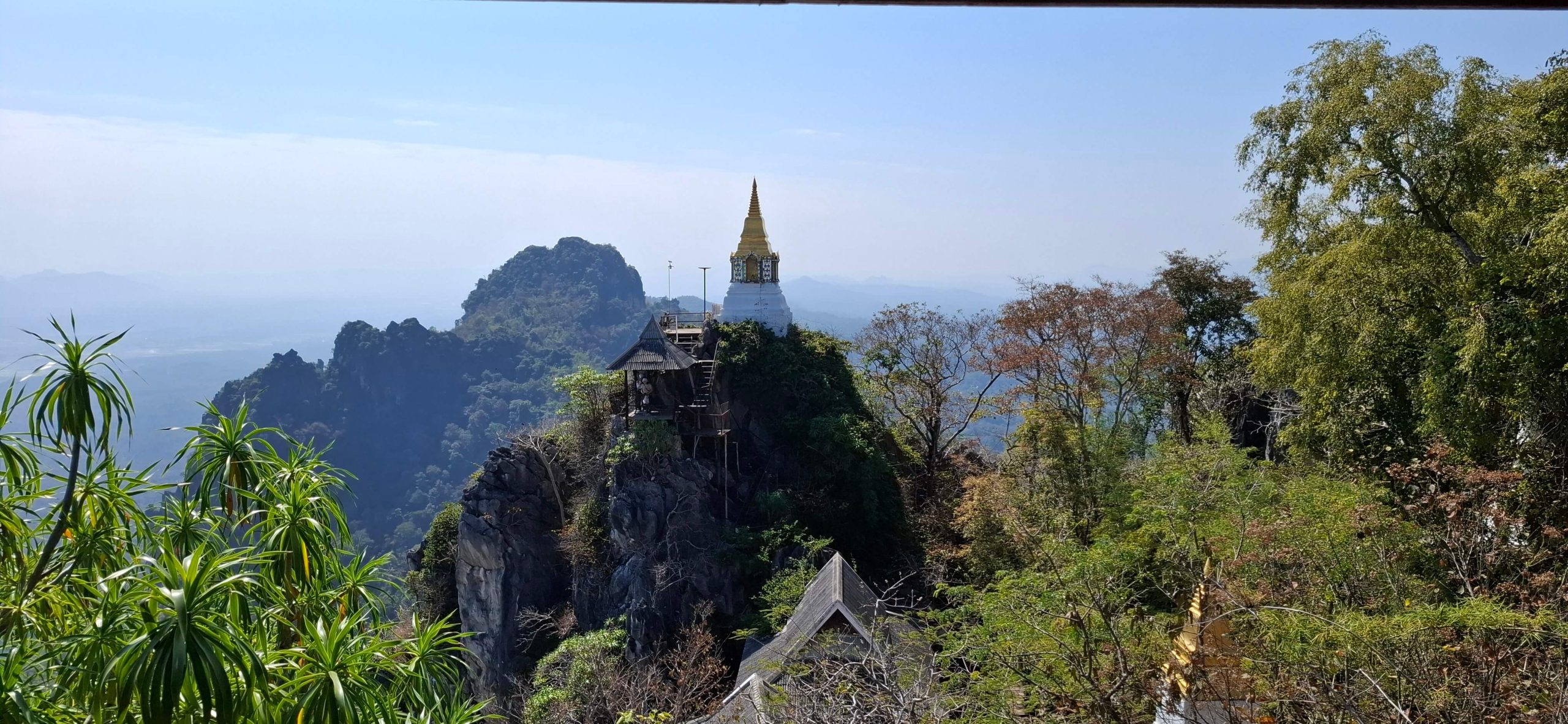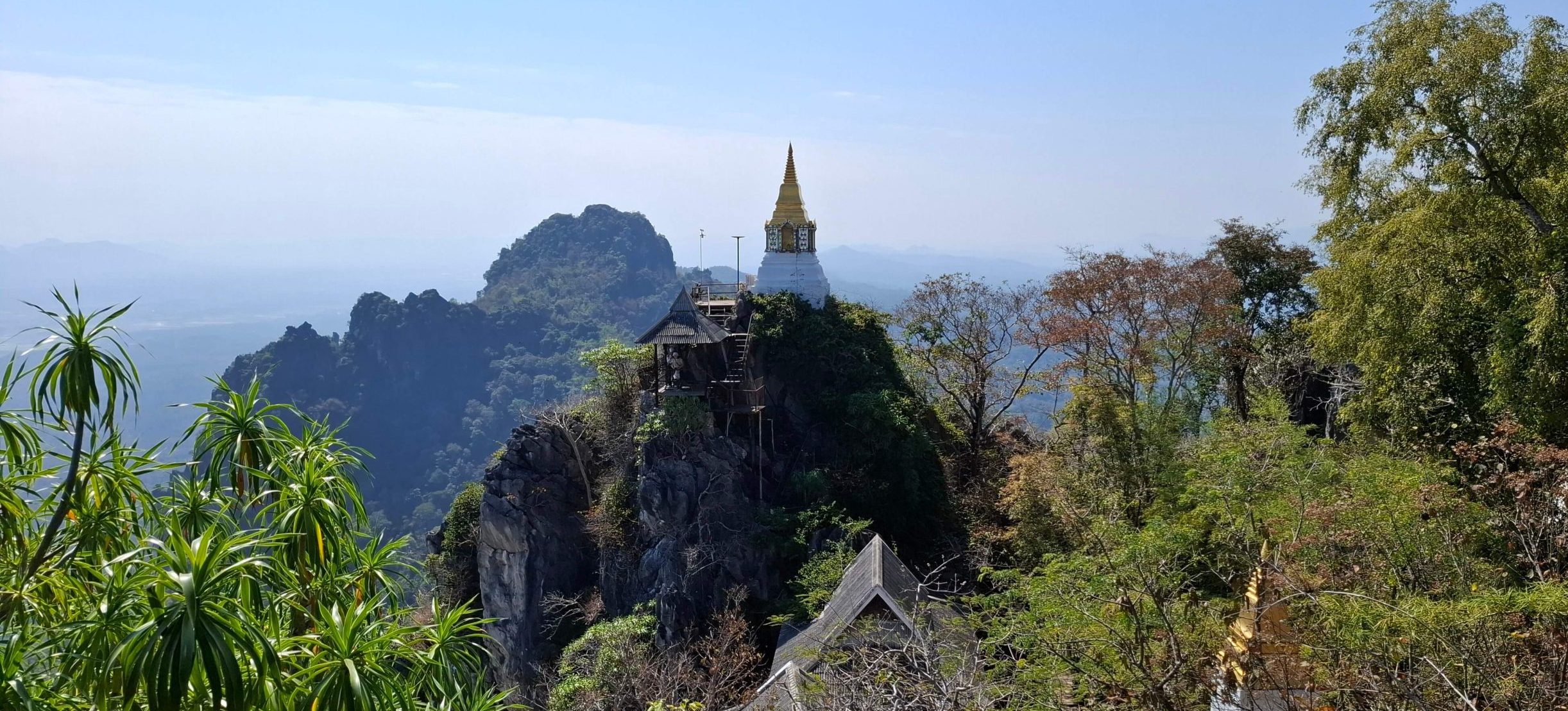 Wat Chaloem Phra Kiat Phrachomklao Rachanusorn is a striking hilltop temple in Lampang Province, northern Thailand, renowned for its white pagodas perched dramatically on jagged limestone peaks. Reached by a steep climb, the temple rewards visitors with sweeping panoramic views of the surrounding mountains and sky, creating a sense of serenity and awe.