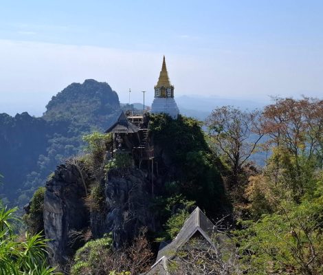 Wat Chaloem Phra Kiat Phrachomklao Rachanusorn is a striking hilltop temple in Lampang Province, northern Thailand, renowned for its white pagodas perched dramatically on jagged limestone peaks. Reached by a…